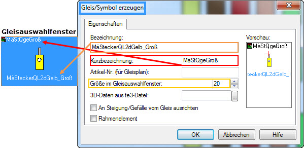 gewählt: Bezeichnung: MäSteckerQL2dGelb_Groß Mä steht für MÄRKLIN Stecker steht für Stecker QL steht für Querloch 2d steht für 2d-Symbol (also kein 3D-Symbol) Gelb gibt die jeweilige Steckerfarbe an _Groß bezeichnet die Steckergröße Kurzbezeichnung: MäStQgeGroß Mä steht für MÄRKLIN St steht für Stecker Q steht für Querloch ge gibt die jeweilige Steckerfarbe an Groß bezeichnet die Steckergröße |